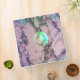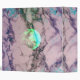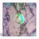 A lime green and turquoise blue full moon graphic set in a dusty-rose grey marbled sky.
