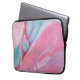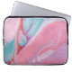 The sleeve is made of nice feeling material and seems very durable. I'm not sure how easy it'll be to clean, but the construction seems sound and the fabric is quick thick. I also like the double zipper. The printing is lovely and appears durable. The white on black contrast is nice, and the design very elegant.