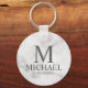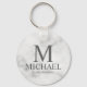 featuring personalized monogram, groomsman's name and title in grey classic serif font style on white marble background.