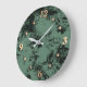 Marble texture pattern in black and green throw pi large clock