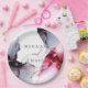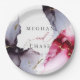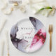 WEDDING PARTY PAPER PLATES | Modern Abstract Deep Crimson Pink Red and muted Amethyst wedding motif. Moody and ethereal , this beautiful hand painted watercolor illustration in shades of deep purple and crimson red with gold fleck highlights - Hand written script calligraphy is combined with a minimalist, contemporary style font. A trendy and modern look for all seasons. This is part of a wedding stationery collection with matching wedding accessories. © WhimsicalArtwork created for the BarefootBride™