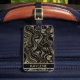 Features an abstract marbled gold design on a black background. Personalize with a name on the front, and a name and address on the back.