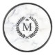 Marbre blanc avec couronne de laurier noir et monogramme personnalisé.