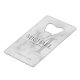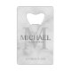 Ajoutez une touche personnelle à votre mariage grâce à l'ouvre-bouteille personnalisé des groomsmen carte de crédit. Ce ouvre-bouteille présente le nom personnalisé du marionnettiste avec titre et date mariage en gris et monogramme en gris clair comme arrière - plan, dans le style de police serif classique, sur arrière - plan en marbre blanc. Parfait aussi pour le meilleur homme, père de la mariée, porteur de bague et plus.