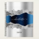 Faux argent et bleu marine métal et agate, marbre pierre imprimé comme arrière - plan Personnalisez et ajoutez votre nom. Le nom est écrit avec un script de style moderne écrit à la main.