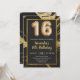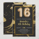 Carte d'invitation en marbre noir et or pour 16e fête d'anniversaire avec numéros de ballon