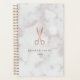 Un planificateur personnalisé chic pour votre salon ou votre salon de coiffure dispose de deux lignes de texte personnalisé en lettres grises au charbon de bois, sur un arrière - plan en marbre orné d'une paire de ciseaux styliste en feuille d'or faux rose. Personnalisez avec votre nom ou nom de salon et l'année, ou votre choix de texte personnalisé.