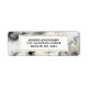 Retourner les étiquettes d'adresse avec un motif marbré élégant et moderne. Marbre blanc, noir et gris fumé avec de minces rubans de tourbillons en faux or dans tout le motif. Un rectangle avec une bordure en feuille d'or imitation superposée avec votre texte personnalisé à l'intérieur.