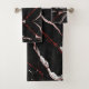 Ce kit de serviettes est décoré dans un style moderne en marbre noir, avec du rouge et du blanc.