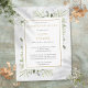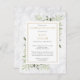 Une élégante carte postale personnalisée de célébration de la vie, invitation à la commémoration photo avec une aquarelle botanique feuillage verdoyant sur un arrière - plan en marbre gris. Conçu par Thisisnotme©