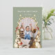 A festive sage green colored Easter greeting card with a personalized photo and greeting alongside vintage artwork of spring flowers and 2 bunny rabbits playing musical instruments. Further customize this card with an additional photo on back as well as a longer greeting.