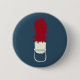 This pin or button features a simple illustration of a marching band hat with feathers on the top in cream or ivory and dark red, set against a navy blue background.