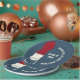 Create personalized party supplies for graduation parties and other special events. These custom paper plates are perfect for marching band members and feature a simple illustration of a marching band hat with feathers on the top in cream or ivory and dark red, set against a navy blue background. Your text appears in bold cream coloured lettering.
