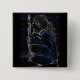 Photograph altered to a glowing outline abstract of a uniformed female marching band member in profile, holding her feathered hat in one hand and a clarinet in the other.