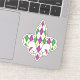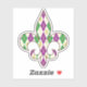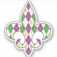 Bright purple and green diamonds overlaid with gold-toned diamond outlines and fleur de lis bring to mind the revelry and celebrations associated with a New Orleans Mardi Gras, while a cream base adds a touch of refinement to this argyle pattern. The pattern is masked behind the silhouette of a fleur de lis to add a fun final note.