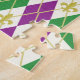 Bright purple and green diamonds overlaid with gold-toned diamond outlines and fleur de lis bring to mind the revelry and celebrations associated with a New Orleans Mardi Gras, while a cream base adds a touch of refinement to this argyle pattern.