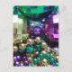 Photograph of Mardi Gras beads. The bead throws feature the gold, purple, and green colours of Mardi Gras or Carnival celebration. Personalize the back of this postcard with your own text or images. Make a custom party postcard invites or invitations!