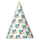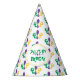 This party hat features a tri-colour Fleur De Lis with a label to personalize with name and occasion.