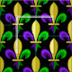 Mardi Gras Carnival Fleur De Lis on black Background Fabric.