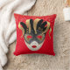 Cet oreiller de lancer est montré en rouge avec une impression festive de masque Mardi Gras. Customisez cet objet ou achetez tel quel.