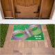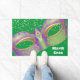 This doormat is shown in green with a gold stars print with a festive Mardi Gras Carnival Mask print.