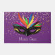 This doormat is shown with a Purple coloured background with gold stars with a festive carnival Mardi Gras Mask print.