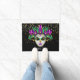 This doormat is shown with a Black coloured background with gold stars with a festive carnival Mardi Gras Mask print.