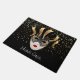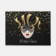 This doormat is shown with a Black coloured background with gold stars with a festive carnival Mardi Gras Mask print.
