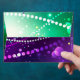 Bright purple and green background with shiny confetti. Festival Mardi Gras.