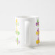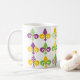 This mug has a Mardi Gras design of fleur de lis lined across the design with different design in them.