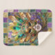 Mardi Gras Gold and Green Peacock Feather Mask Sherpa Blanket