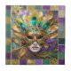 Mardi Gras Gold and Green Peacock Feather Mask Tile