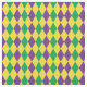 Mardi Gras fabric patterned with purple, green and yellow harlequin diamonds