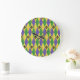 Mardi Gras Harlequin Fleur De Lis Wall Clock