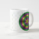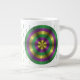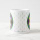 If you love Mardi Gras, this design will be great for you. It features shades of green, gold, and purple arranged in rings from dark to light that gives the circle a 3D look. This mug is available in jumbo, espresso, and bone china sizes and styles.