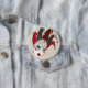 Add a touch of mystery to your outfit with this elegant masquerade jester mask button. Featuring an intricate red and black harlequin design with ornate gold-tone detailing and a classic paisley backdrop, this pin is a great accessory for carnival season, costume parties, or as a festive party favor. Its vintage hand-drawn style makes it a standout piece for any collector.