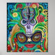 This Original Artwork is a colourful representation of Mardi Gras. Centred around a skull popping out of the unzipped head of a dancing girl . Adorned with wildflowers and roses with many green leaves, Mardi Gras beads, the fleur-de-lis, hearts and a colourful mask. The tradition of Mardi Gras is sure to pass from generation to generation lifting up our spirits with parade floats full of vivid colours, Jazz Music Playing in New Orleans with stories of Voodoo and people walking the street in unique costumes. Acrylics on Canvas – 2012