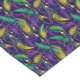 This table runner is shown with a festive Mardi Gras colors beads and feathers pattern print.
