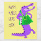 These wine labels will jazz up your Mardi Gras celebration. A purple alligator is playing a green accordion and wearing gold beads. Text says Mardi Gras 20XX, so you can update the year, or change the text entirely.