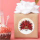 This large size round sticker is shown in a festive Mardi Gras celebration mask print design.