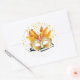 This large size round sticker is shown in a festive Mardi Gras celebration mask print design.