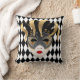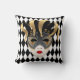 This throw pillow is shown in white with a festive Mardi Gras Mask print design.