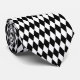 Mens tie shown in a Black and White Mardi diamond pattern print design.