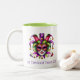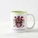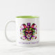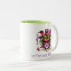 This ceramic coffee mug is shown with Mardi Gras images, Text of "Let the good times roll' is beneath the prints.