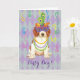 Cute Welsh Springer Spaniel puppy, dressed in festive feather mask and beads, ready for fun on Mardi Gras or at any other time. Great gift for yourself and your Welshie-loving family and friends.