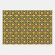 3-sheets of wrapping paper with a seamless pattern with fleur-de-lis (lily flowers) in the colours of New Orleans Mardi Gras; purple, golden, and green design