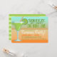 Les couleurs vives du coucher du soleil mettent en valeur ce design moderne, parfait pour les rassemblements estivaux, les 21 ans, les enterrements de vie de jeune fille ou les fêtes. Le design présente une illustration graphique d'un verre à margarita rempli d'un délicieux cocktail et garni d'une tranche de citron vert. Le fond est un dégradé amusant qui passe de l'aqua vif à l'orange du coucher du soleil. Pour plus de plaisir, l'illustration comporte les mots « Squeeze me baby one more lime » dans des nuances de vert citron vert. Personnalisez l'invitation avec les informations de votre événement en utilisant les modèles faciles fournis. Le verso comporte davantage de modèles de texte pour ajouter plus de détails sur l'événement et est orné d'un motif rayé large dans des nuances de vert citron vert.
