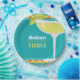 Time for a fiesta! Our margarita fiesta party paper plates feature a modern margarita glass on a turquoise background with orange and yellow accents.