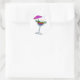 A brightly coloured margarita glass filled with a wavy rainbow of tequila cocktail fun, bubbling stars and topped with a hot pink, magenta cocktail umbrella. Perfect for any party or happy hour celebration.