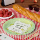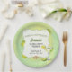 Celebrate your bachelorette party or bachelorette weekend with margaritas. This fun paper plate features a watercolor image of a classic margarita with lime wedges scattered around. The frame contains the information against a green watercolor speckle pattern background. A pair of wedding rings brings the point of the celebration home. A plate to make a bachelorette party or a hen night one to remember. Available with matching products.